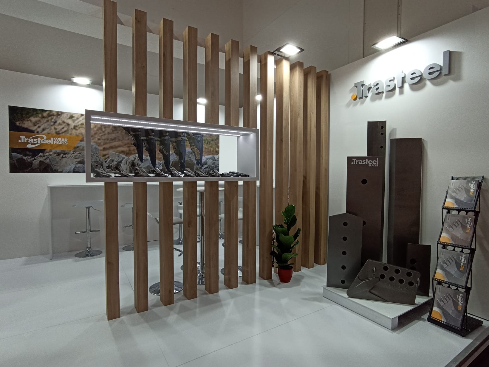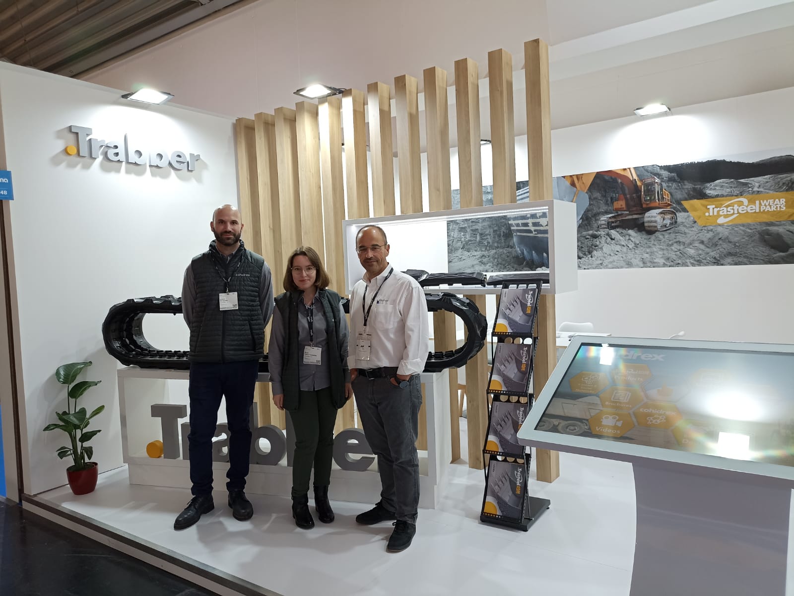 Una pantalla LED de 2,5 m x 1,5 m que ha presidido nuestro stand, zona social y de reunión, gran variedad de merchandising para nuestra comunidad, azafatas, kiosko interactivo y muchos más detalles que, sin duda, han marcado la diferencia. Sucesivas felicitaciones por llevar un stand muy luminoso, elegante y moderno que pretendía transmitir los insights de la compañía y situar a Cohidrex y a Trasteel Wear Parts en el mundo.