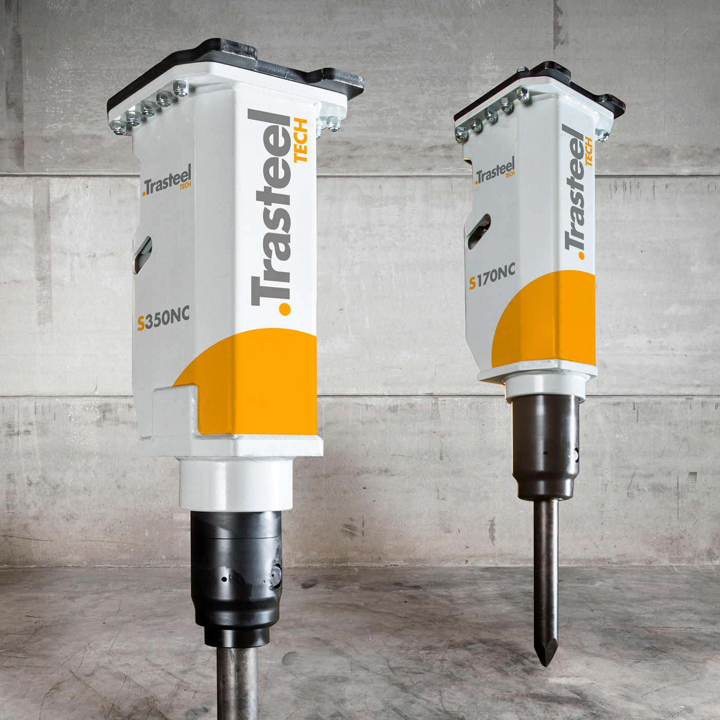 Trasteel Tech ofrece nueve modelos de martillos hidráulicos, destinados a dar servicio a todo tipo de máquinas, desde excavadoras ligeras hasta mini excavadoras.