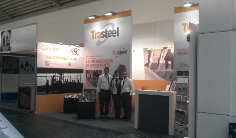 Presentamos en la feria nuestra nueva marca de material de desgaste: Trasteel, donde ofrecemos una amplia gama de productos: dientes, porta-dientes y protecciones. Esta nueva marca suscitó un gran interés por parte de los visitantes profesionales, que vieron en Trasteel un nuevo concepto de material de desgaste, que aportará al cliente grandes rendimientos sobre cualquier terreno.